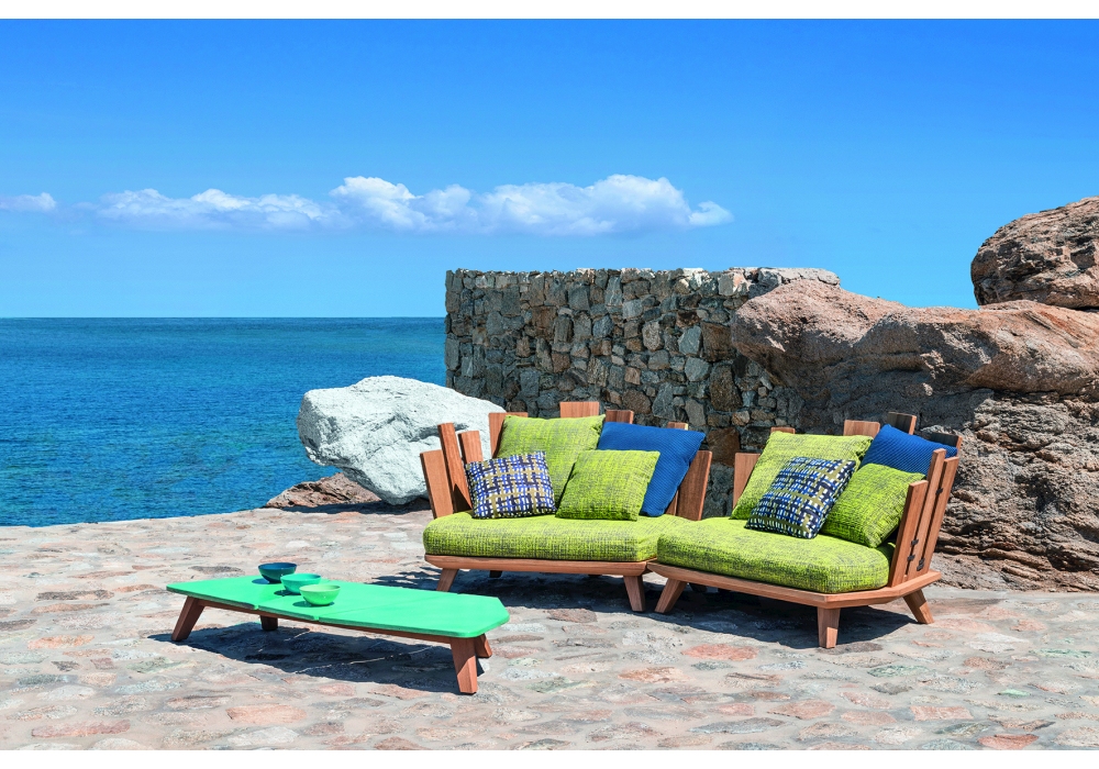 Rafael diseñada por Paola Navone para Ethimo es una mesita con estructura en madera de teca y tapa en mármol o piedra de lava. Rafael está disponible en diferentes acabados y medidas.