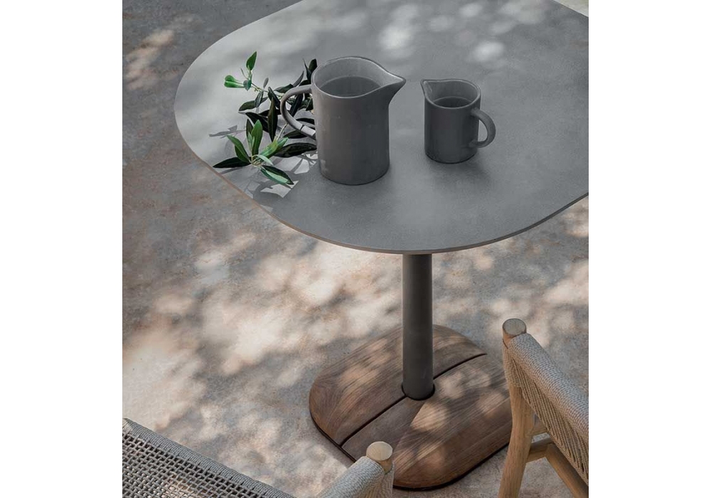 Enjoy producida y firmada por Ethimo es una mesa de centro de exterior cuadrangular con estructura de metal y tapa de piedra cerámica. Enjoy está disponible en diferentes acabados, tamaños y modelos.
