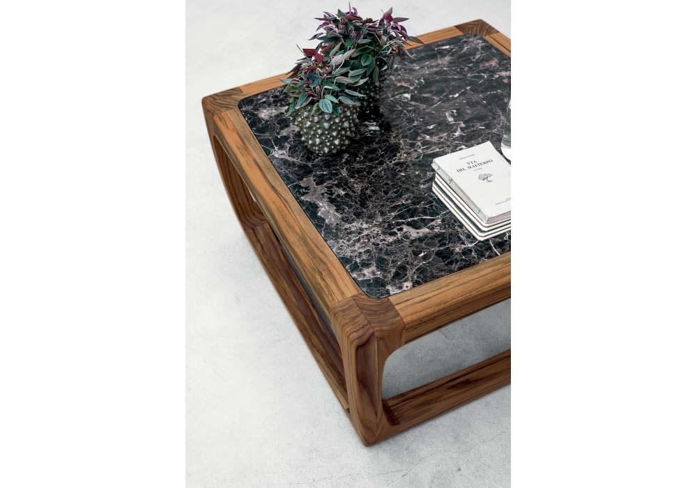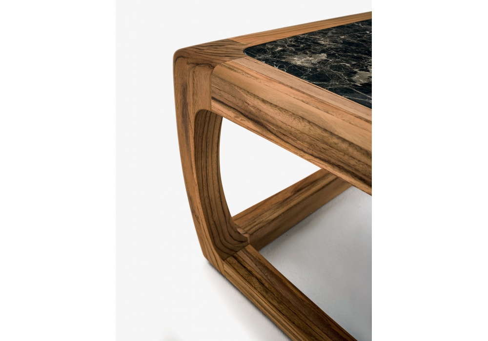 Bungalow Side Table diseñada por Jamie Durie para Riva 1920 es una mesa auxiliar compuesta por una estructura de madera de teca maciza completamente torneada, ensamblada y lijada a mano, combinada con una tapa de mármol empotrada.