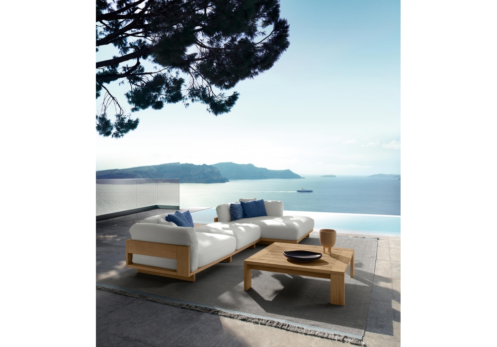 Argo Wood diseñada por Ludovica + Roberto Palomba para Talenti es una mesita de exterior realizada con estructura de madera accoya en los colores palisandro o teca natural. Disponible en varias dimensiones.