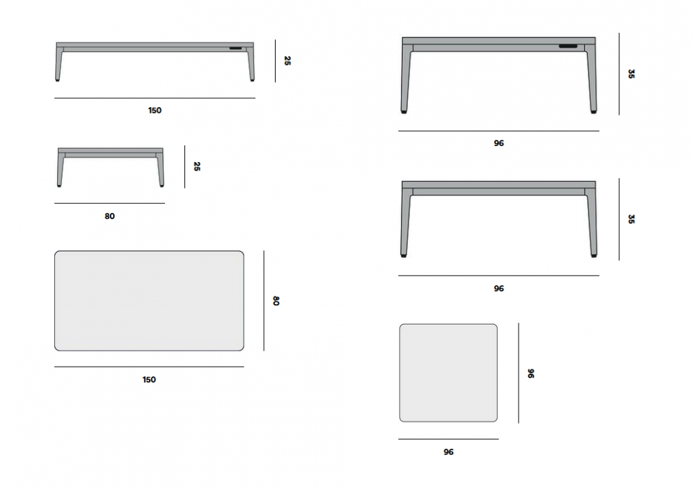 | Dimensiones | - 96 x 96 x H 35 cm; - 96 x 46 x H 35 cm. |