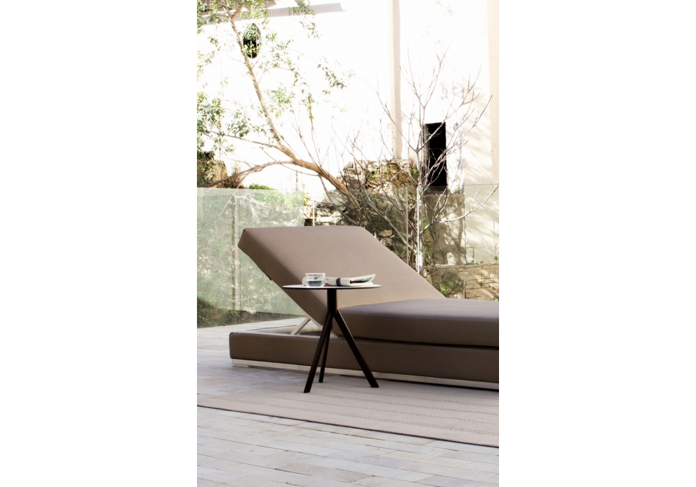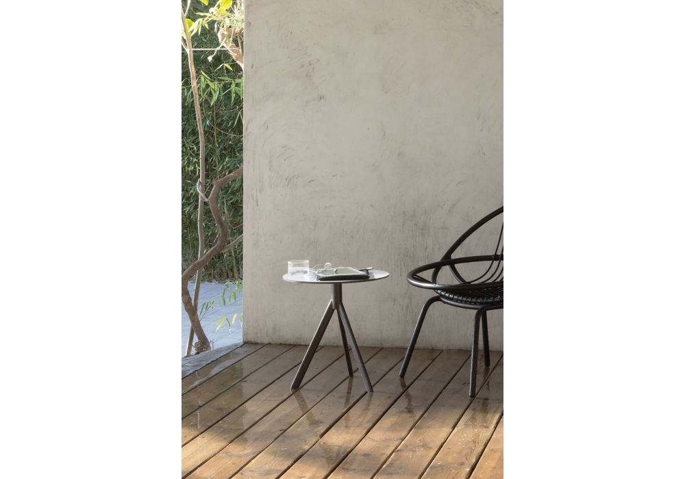 Cafe diseñada por Studio expormim para Expormim es una mesa auxiliar para exterior con estructura de tubo ovalado en acero inoxidable, acabado con polvo de poliéster. Disponible en diferentes acabados.