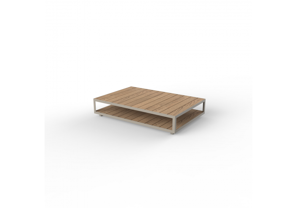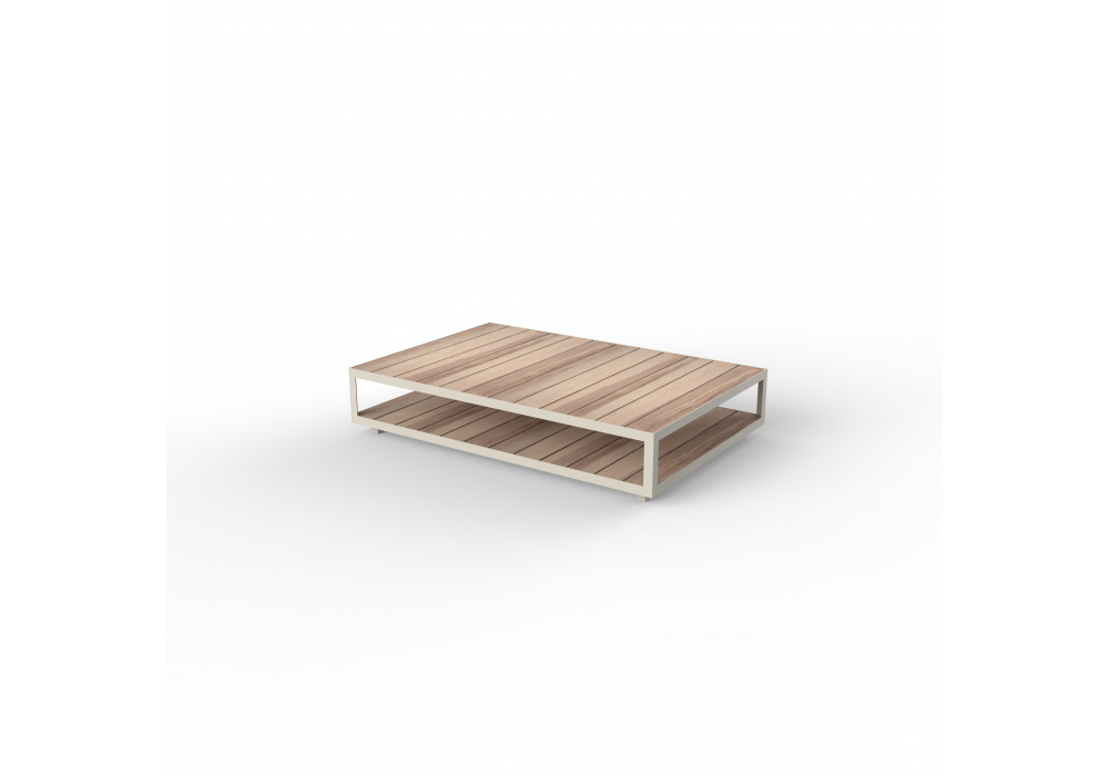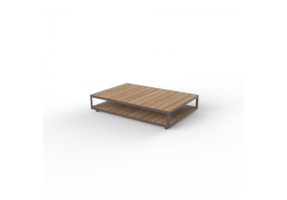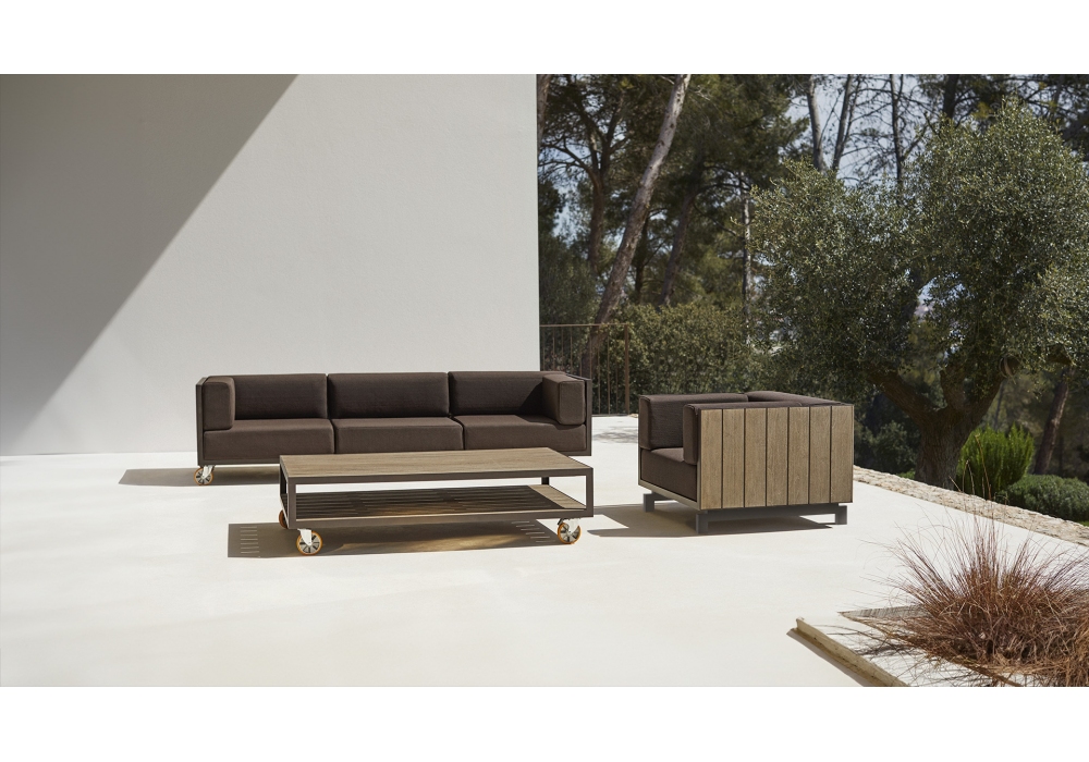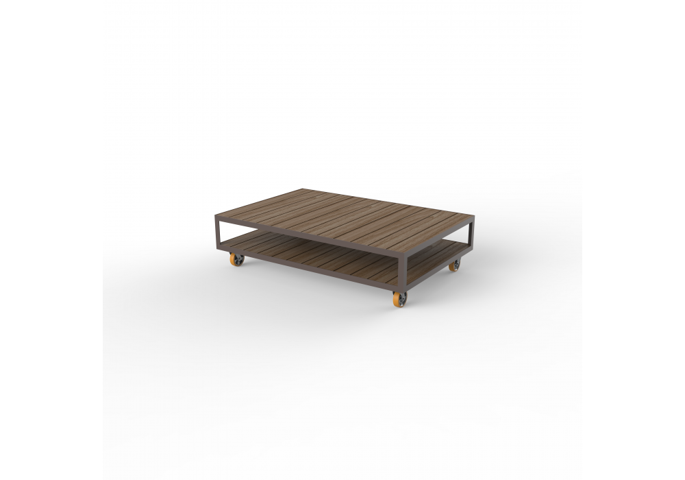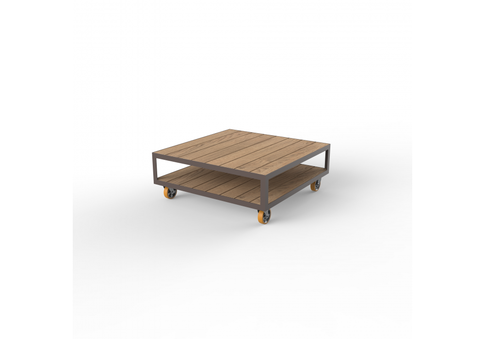 Vineyard diseñada por Ramón Esteve para Vondom es una mesita realizada con estructura de aluminio y tapas de madera. Disponible con ruedas o con patas.