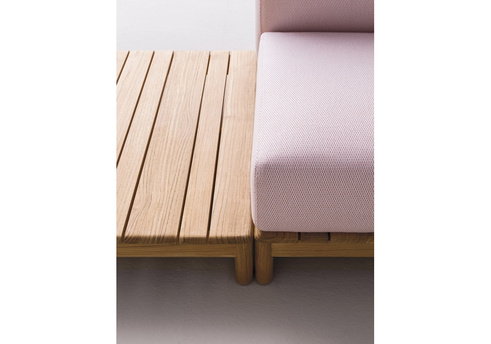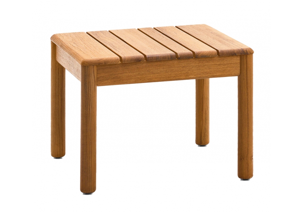 Barcode diseñada por Alessandro Dubini para Varaschin es una mesita con estructura en teca de plantación certificada. Disponible en dos tamaños.