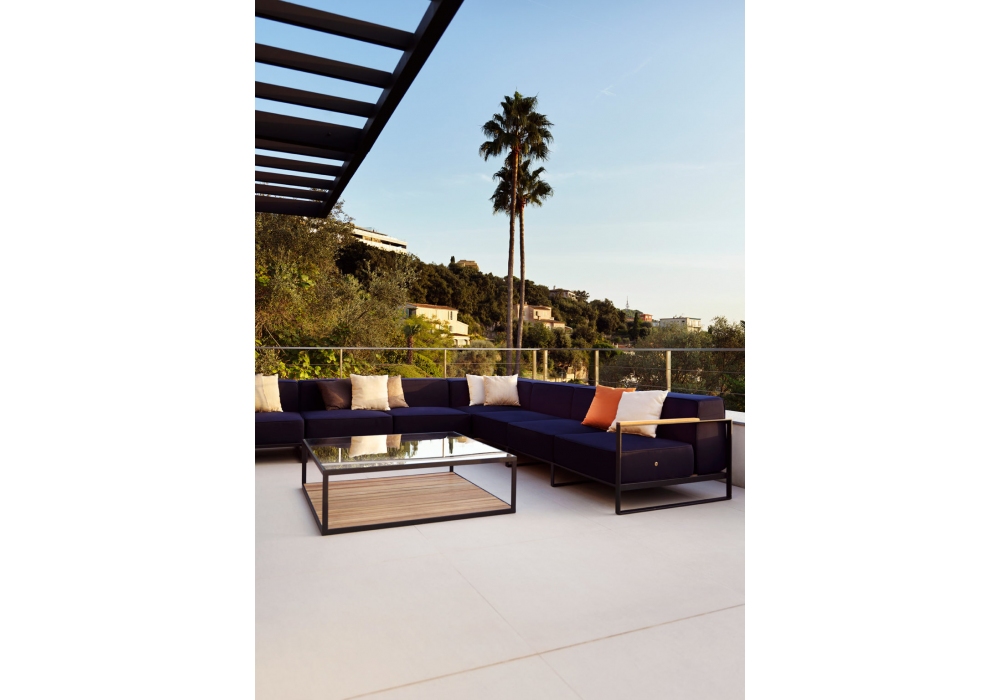 Garden Moore diseñada por Broberg & Ridderstråle para Röshults es una mesita con estructura en acero inoxidable antracita y teca. Disponible en diferentes versiones.