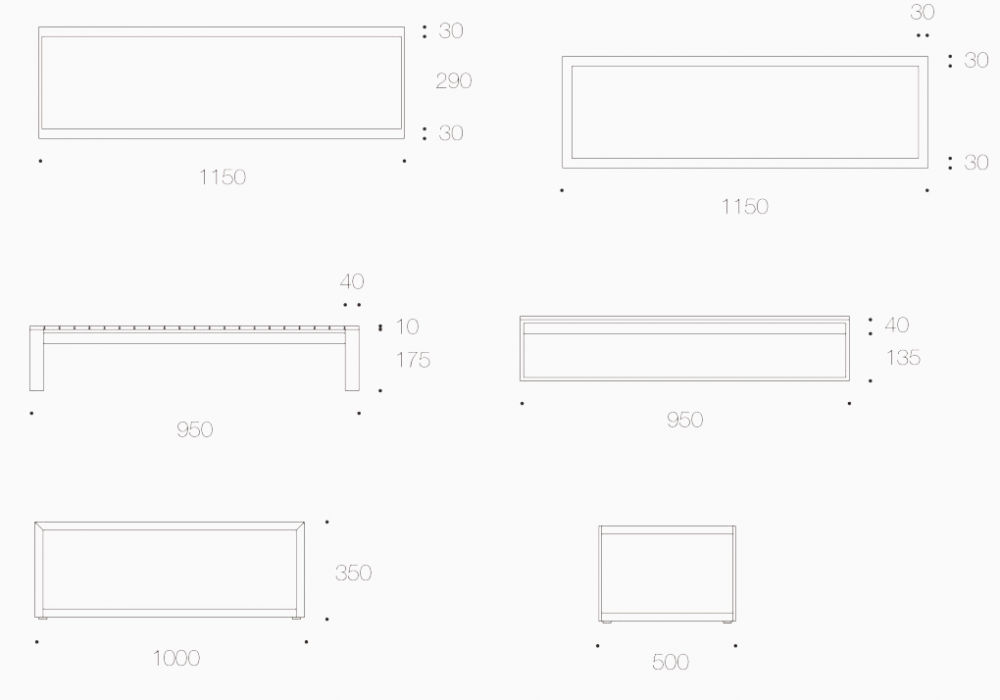 | Dimensiones | 95 x 95 x H 19 cm; 100 x 50 x H 35 cm; 15 x 115 x H 35 cm. |