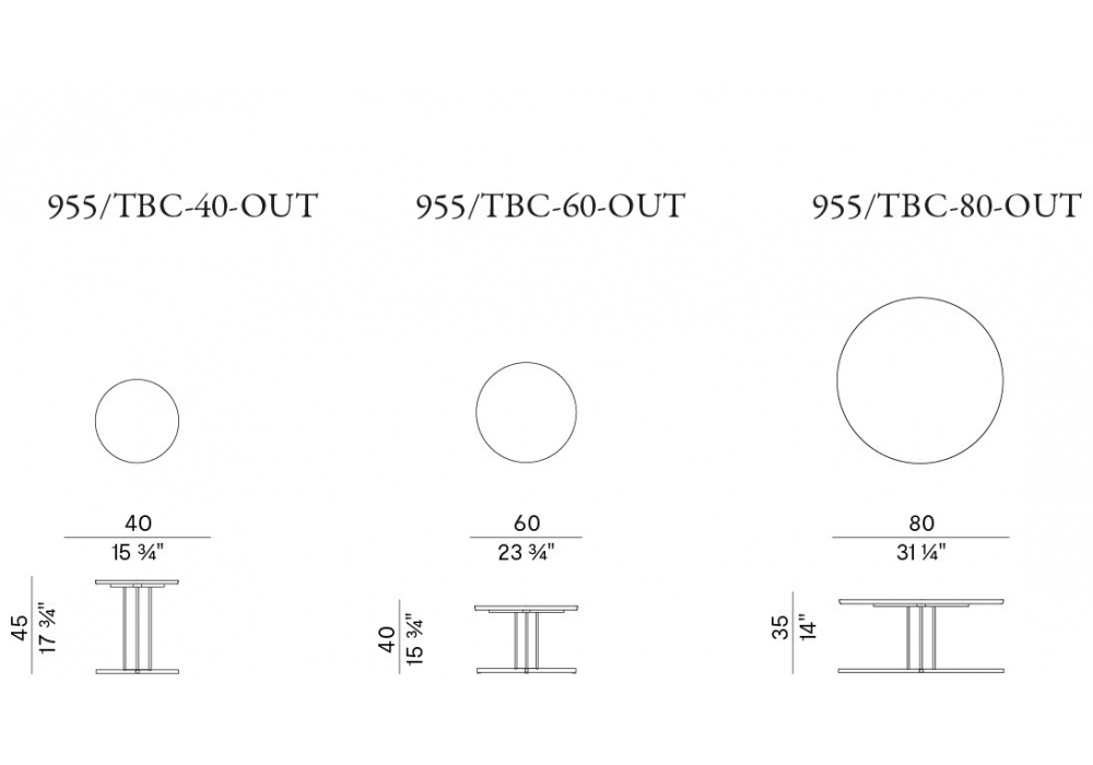 | Dimensiones | Ø 40 x H 45 cm; Ø 60 x H 40 cm; Ø 80 x H 35 cm. |