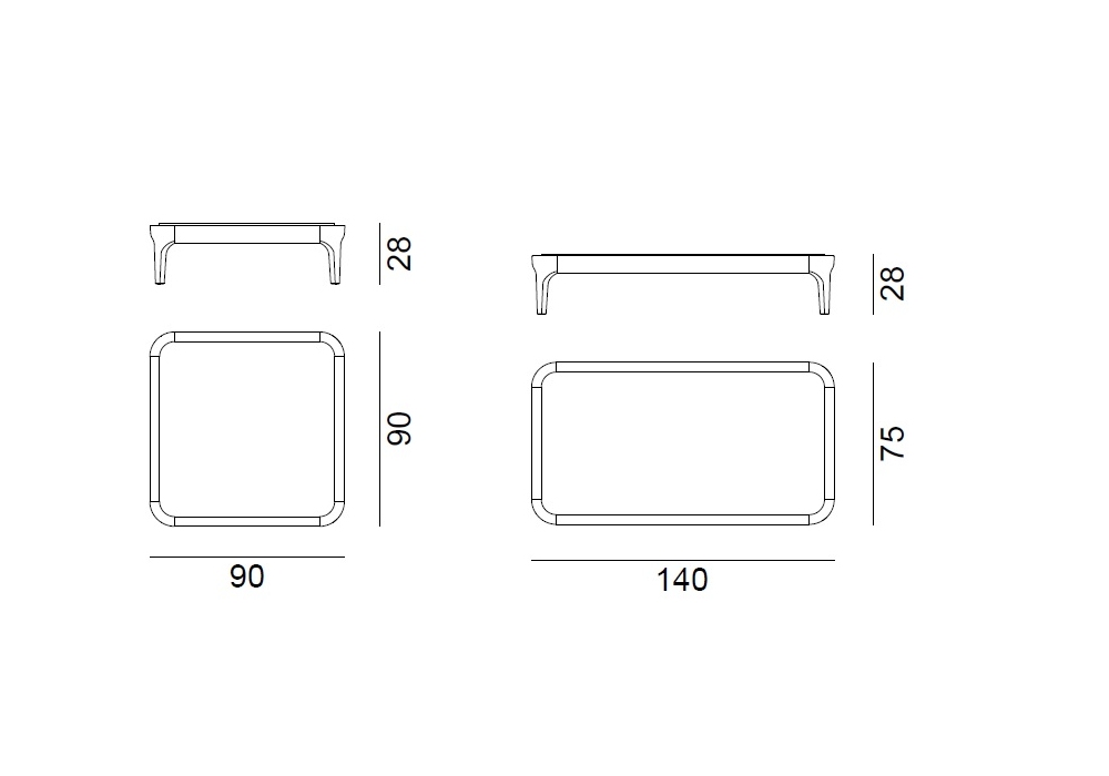 | Dimensiones | 90 x 90 x H 28 cm; 140 x 75 x H 28 cm; |