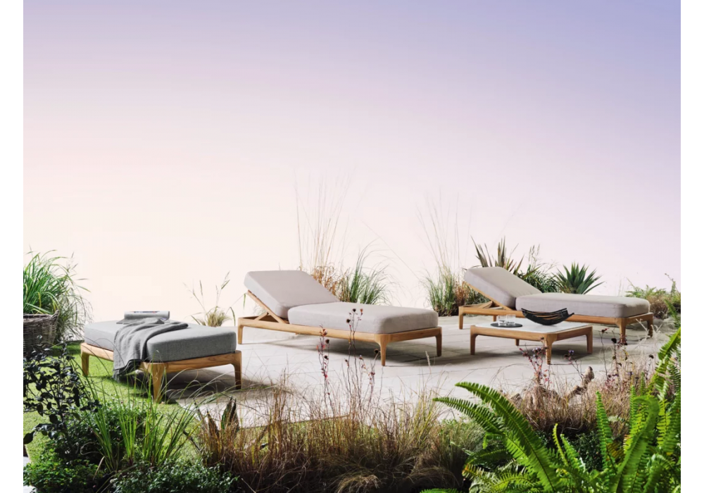 Mediterraneo diseñada por Francesco Meda para Gervasoni es una mesita realizada con estructura de teca y tapa de mármol blanco de Carrara.