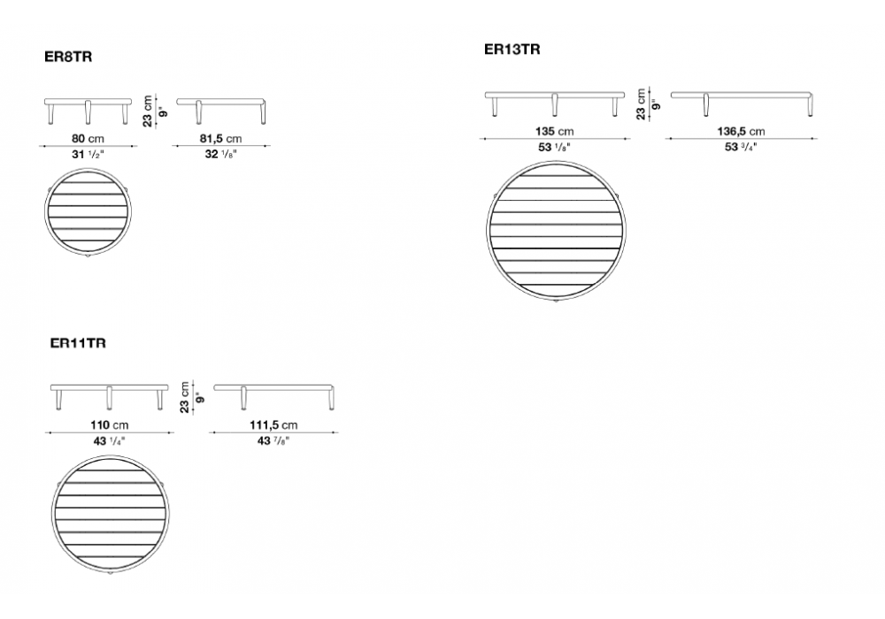 | Dimensiones | 80 x 81.5 x H 23 cm; 135 x 136.5 x H 23 cm; 110 x 111.5 x H 23 cm. |