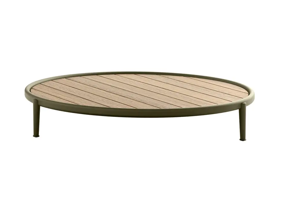 Erica diseñada por Antonio Citterio para B&B Italia Outdoor es una mesita para exterior con estructura de aluminio pintado en varios acabados y tablero de teca natural.