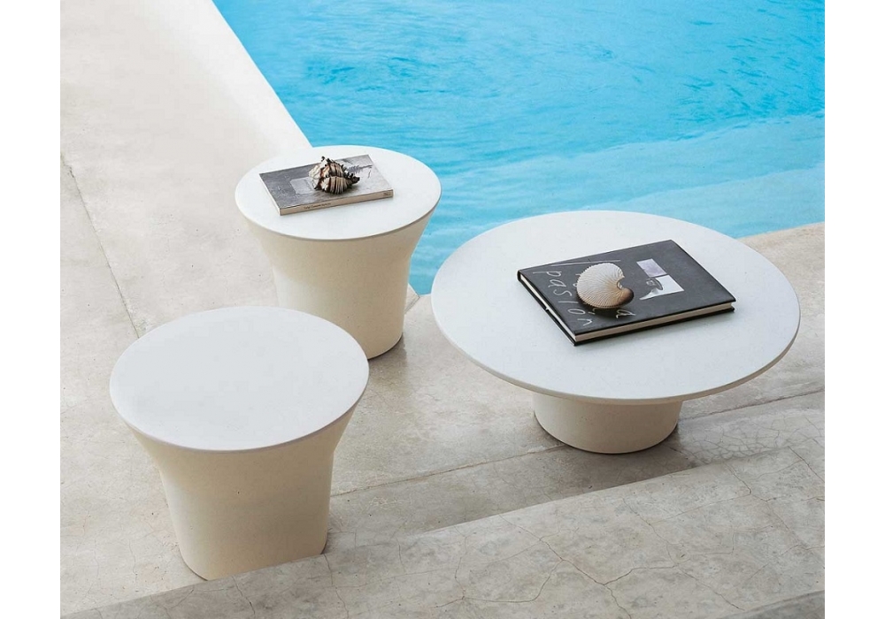 Springtime diseñada por Jean-marie Massaud para B&B Italia Outdoor es una mesa baja en Cristalplant Outdoor® blanco (carga mineral natural de hidrato de aluminio con resina poliéster acrílica). Disponible en dos dimensiones.