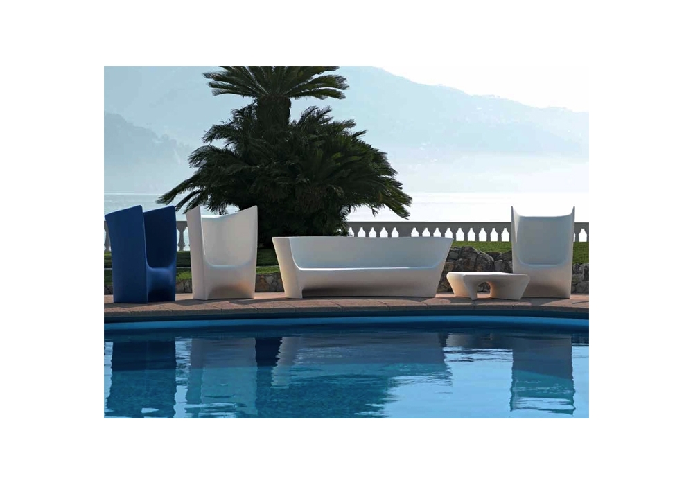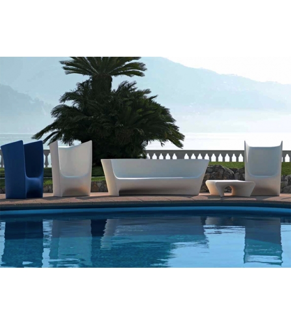 Piaffè diseñada por Ludovica + Roberto Palomba para Driade es una mesita de exterior monobloque en polietileno disponible en dos colores: blanco o gris claro.