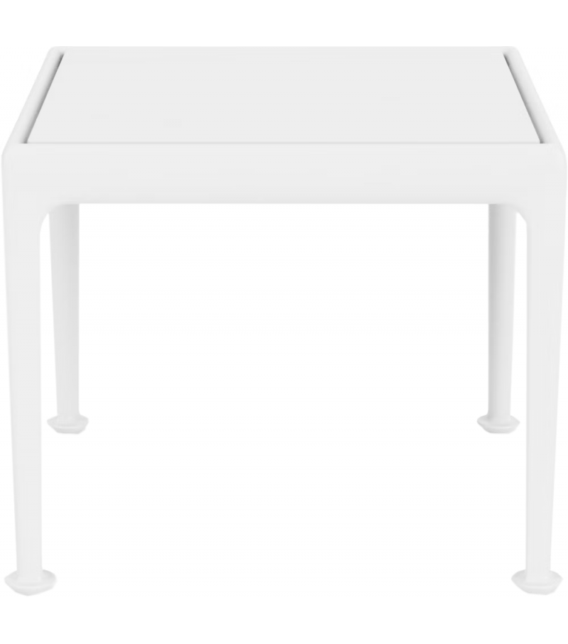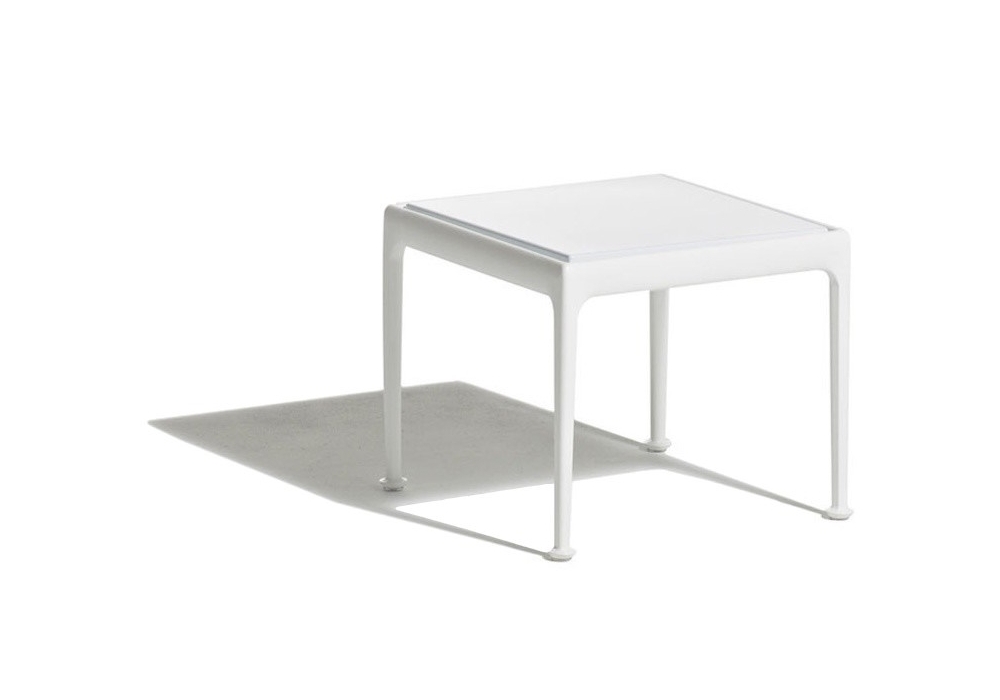 1966 Firmada por Richard Schultz para Knoll es una mesa de centro con estructura de aluminio extruido y fundido a presión con pintura de poliéster resistente a la intemperie. Tablero de acero porcelánico en blanco y bronce oscuro. Disponible en varios tamaños.