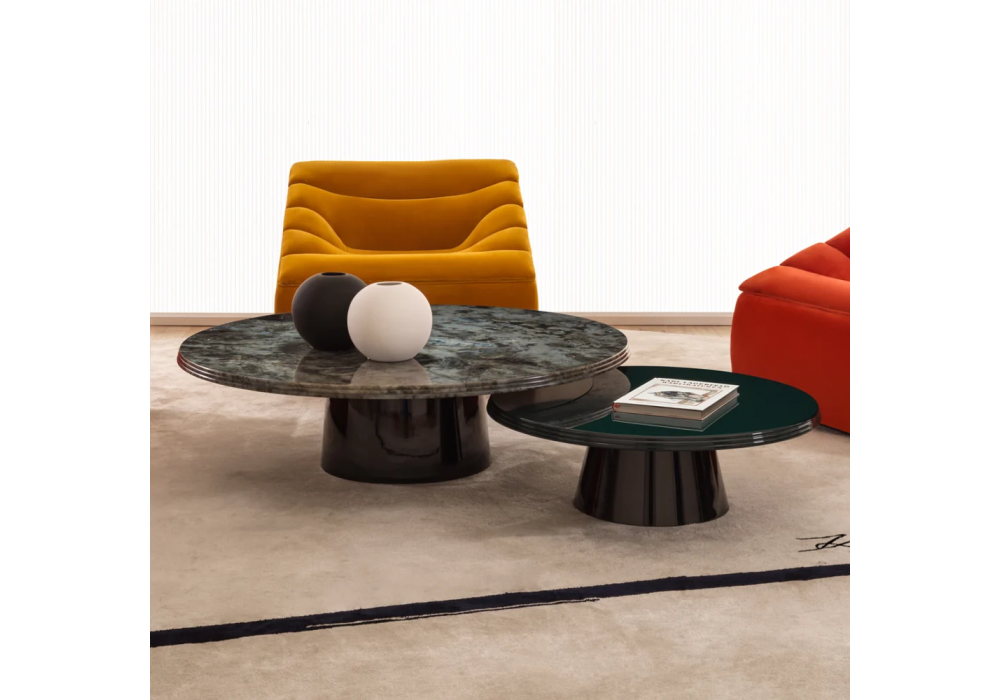 Wellen diseñada por Toan Nguyen para Karl Lagerfeld Maison es una colección de mesitas con tablero disponible en mármol o en acabado lacado y base lacada.