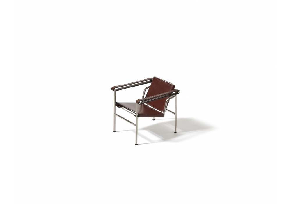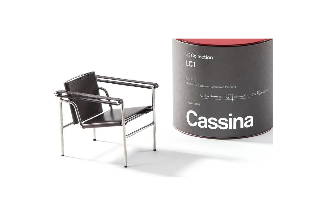 Le Miniature - 1 Fauteuil Dossier Basculant diseñado por Le Corbusier, Pierre Jeanneret, Charlotte Perriand para Cassina es una miniatura realizada con una estructura cromada y tapicería de cuero color brezo.