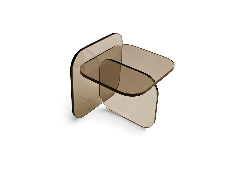 Sol Side Table diseñada por Ortega-Guijarro para ClassiCon es una miniatura realizada en cristal de parsol en color bronce o gris.