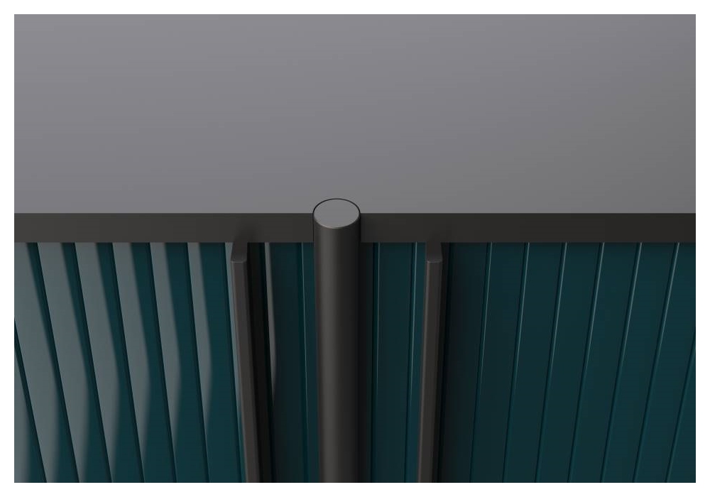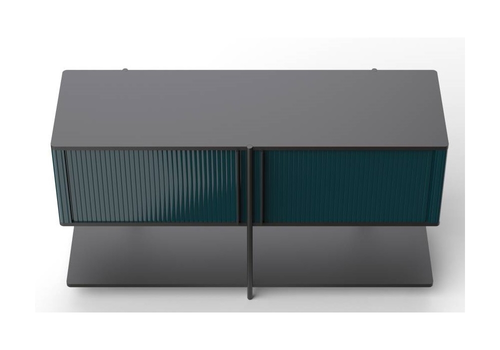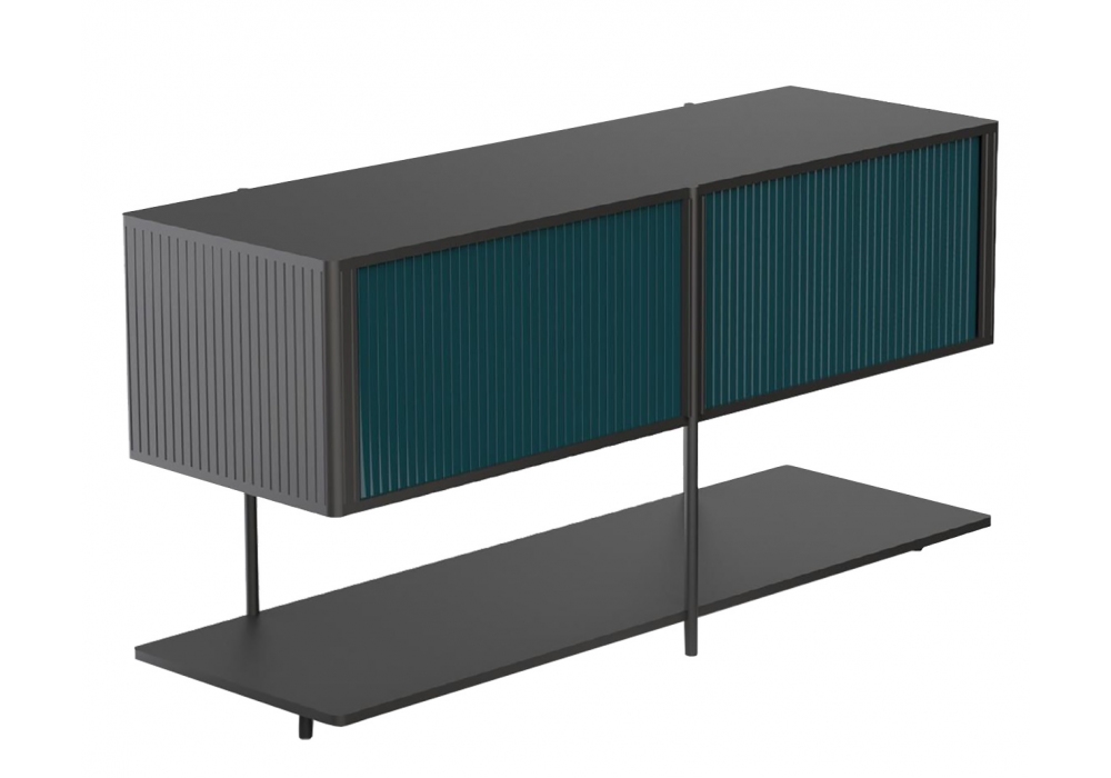 Aero B diseñado por Shibuleru para Living Divani es un mueble bar con parte superior e inferior en MDF de 18 mm de grosor. Cuerpo central en MDF conformado y fresado en el exterior, hombros internos y estante de soporte central en MDF. Todos los componentes de MDF son barnizados en negro mate o blanco. Puerta de rejilla, en aluminio extrusionado anodizado negro.