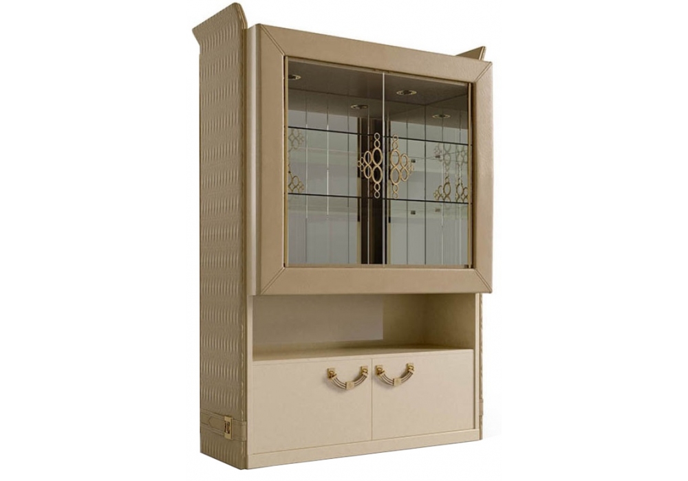 Numero Tre diseñado por Roberto Serio para Turri es un mueble Bar con estructura en MDF, madera maciza, contrachapado y paneles de aglomerado en acabado lacado brillo con respaldo total o parcialmente tapizado en piel bordada. La tapa está disponible en mármol o madera. Bajo pedido, los mangos pueden estar revestidos de cuero o de metal.