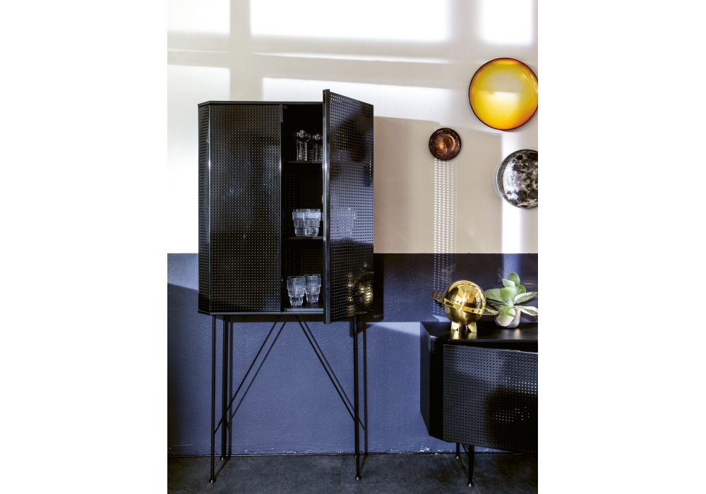 Perf by Diesel with Moroso combines the strenght of industrial cabinet-making and exlusive finishes. The structure, tough and light at the same time, features shutters in pierced panels and a double foulded frame. Between the available finishes, the shutters in shiny antique copper inserted onto a black and rough frame.