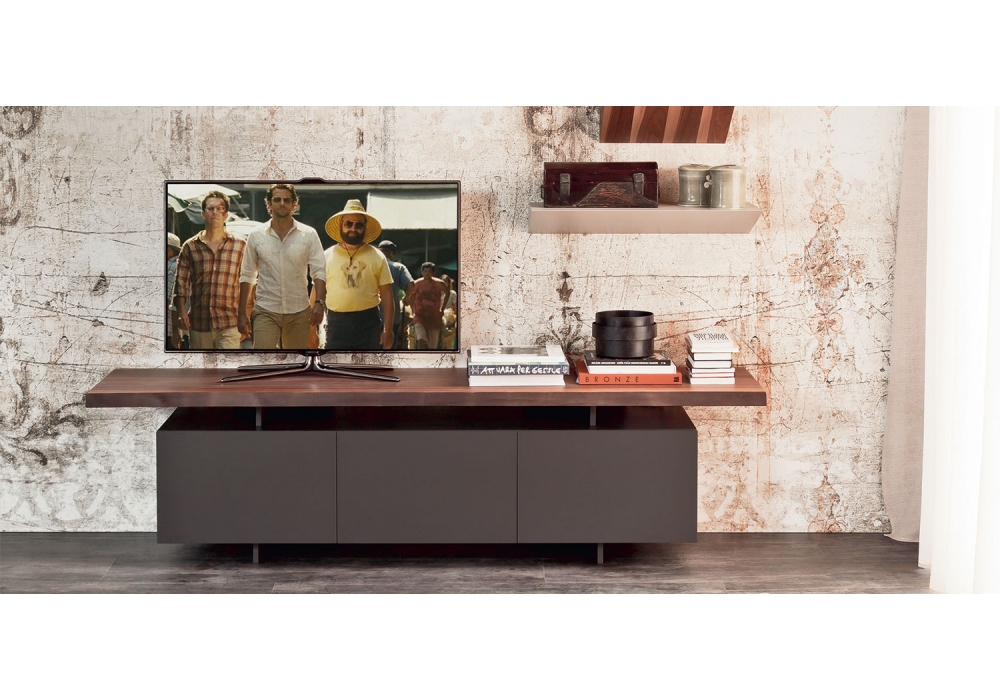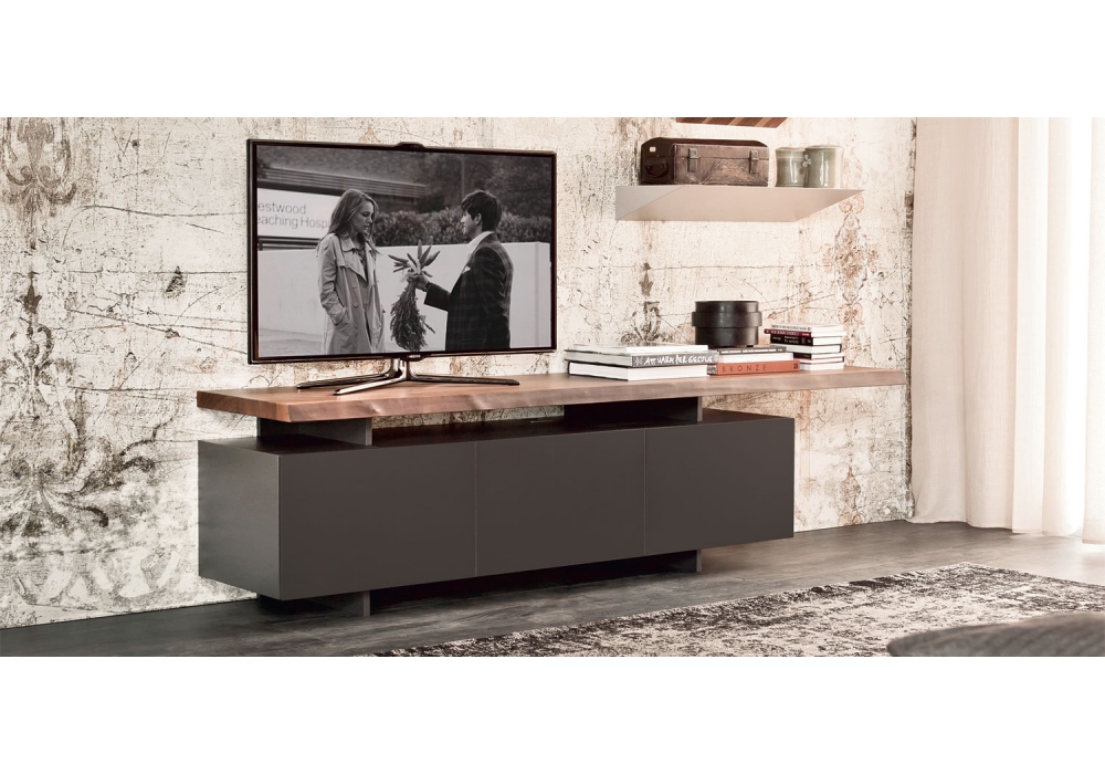 Seneca diseñado por Paolo Cattelan para Cattelan Italia es un soporte TV con 3 o 4 puertas en madera barnizada disponible en dos acabados: blanco mate y grafito. Sobre con el mismo acabado o en nogal Canaletto, roble ahumado o natural con bordes irregulares. Disponible en dos medidas.