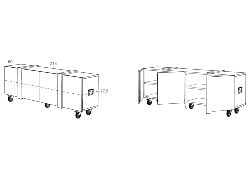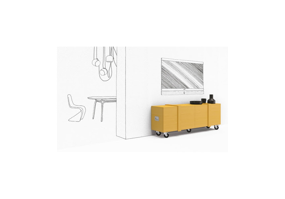 Fragile diseñado por Claudio Bitetti para Minotti Italia es un aparador o mueble TV en madera aglomerada compuesto por cuatro puertas batientes con tiradores y ruedas industriales (h 15 cm con freno), con dos baldas móviles en el interior. Superficies externas en madera de alerce cepillada, acabado gofrado disponible en diferentes colores. Posibilidad de añadir adhesivo.
