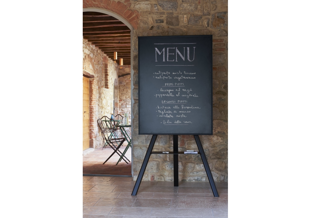 Cartesio diseñado por Lapo Ciatti para Opinion Ciatti es un soporte / soporte multimedia de acero con columna de recogida de cables y estante integrado, para soportar televisores de 43 a 82 pulgadas o pizarra magnética de escritura con marco de aluminio disponible en dos versiones: negro para tizas, blanco para rotuladores. Disponible en diferentes acabados.