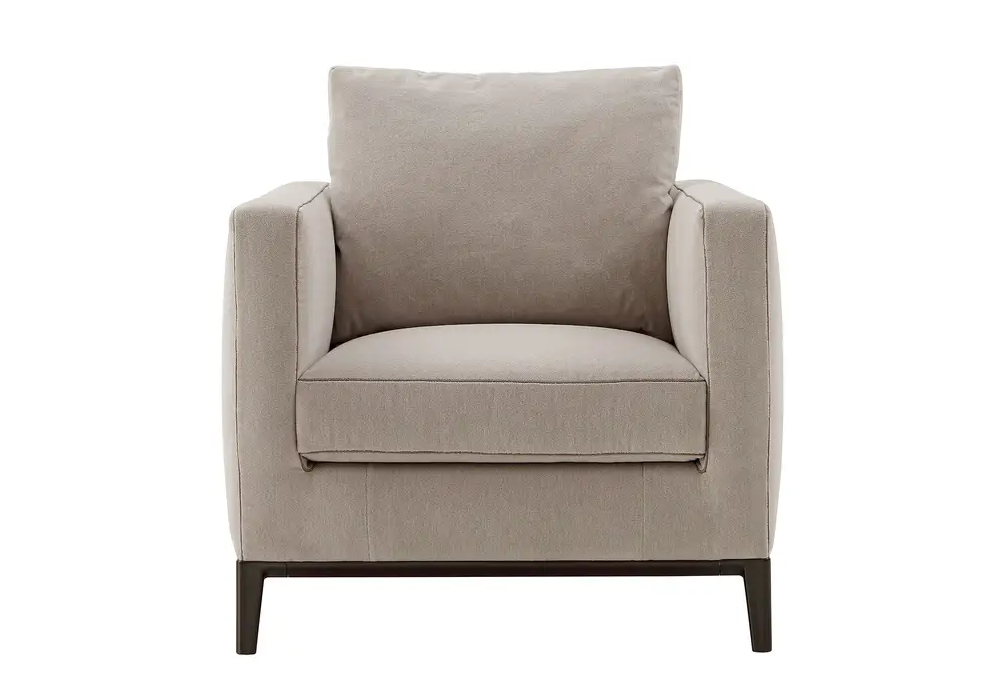 Lucrezia Soft diseñada por Antonio Citterio para Maxalto es una butaca con base de aluminio fundido y extruido pintado y revestimiento en diferentes tejidos o pieles. Disponible con cojines de asiento lisos o acolchados.