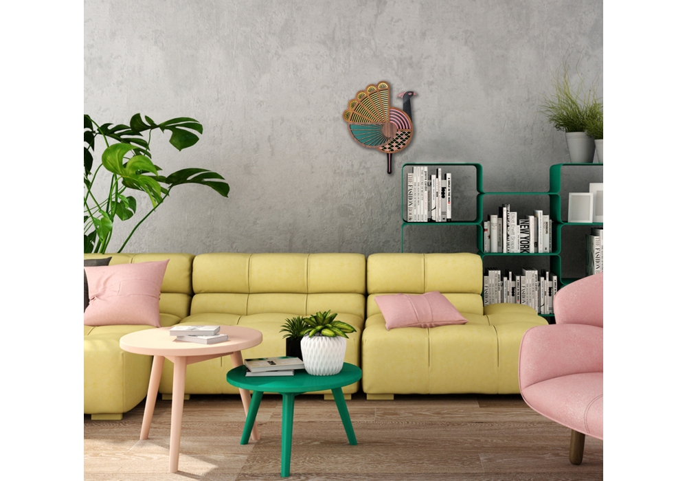 The Peacock 3 diseñado por Tzachi Nevo para Umasqu es una decoración de desfile de madera hecha a mano con una combinación de diferentes materiales como chapa, MDF, formica, metacrilato, plástico y fieltro pintado con colores de calidad Molotow ™ Premium.