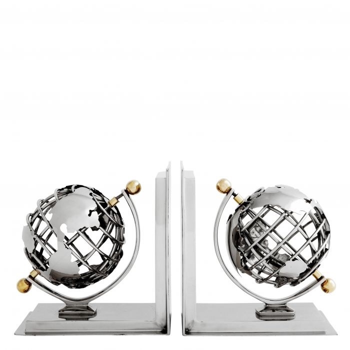 Bookend Globe set of 2 diseñado por Eichholtz es un ornamento que consiste en un juego de dos sujetalibros. Disponible en 2 acabados