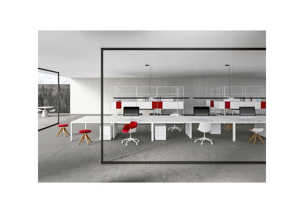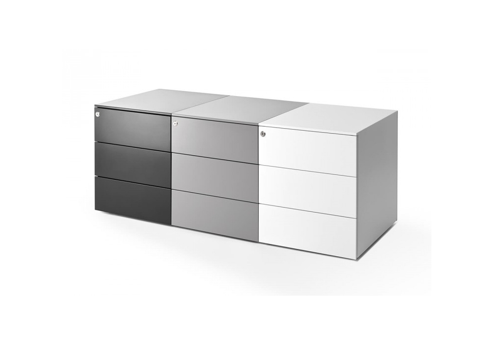Office Cabinets producido por MDF Italia es una cómoda disponible en tres tipos: con 3 cajones con cerradura completa con cajón de papelería, con 1 cajón con 1 archivador completo con cajón de papelería, con 3 cajones con accesorio de soporte de papelería. Todos los modelos están equipados con ruedas giratorias, sistema antivuelco y cajones extraíbles sobre guías de bolas. La cómoda está disponible en diferentes colores.