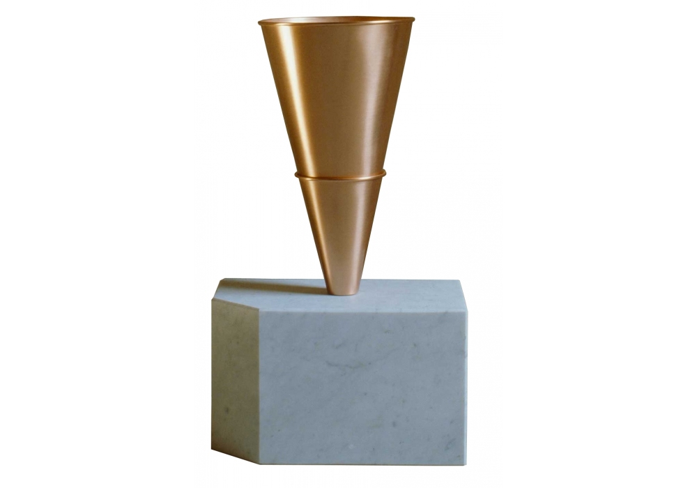 There Are Times diseñado por Lawrence Weiner para Memphis Milano es un cesto hecha de latón y mármol con baño de cobre. Edición limitada de 25 piezas.
