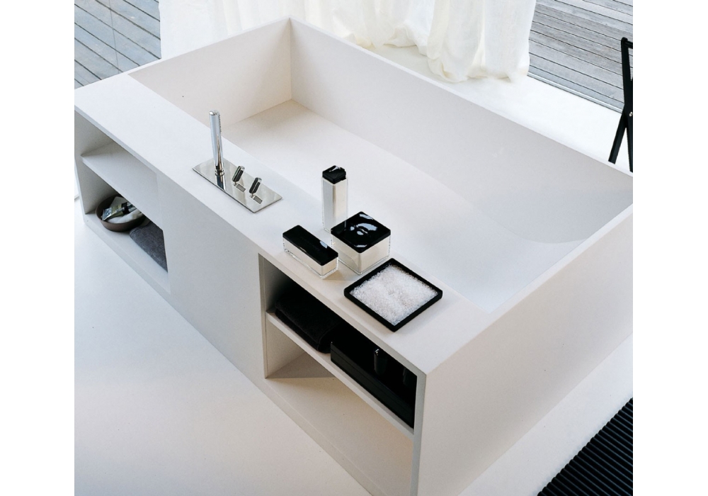 Square diseñado por Benedini Associati para Agape es un grifo de bañera para borde realizado en acero inoxidable AISI316L pulido o satinado. Está formado por mezclador monomando progresivo y ducha integrada (flexo y ducha incluidos).