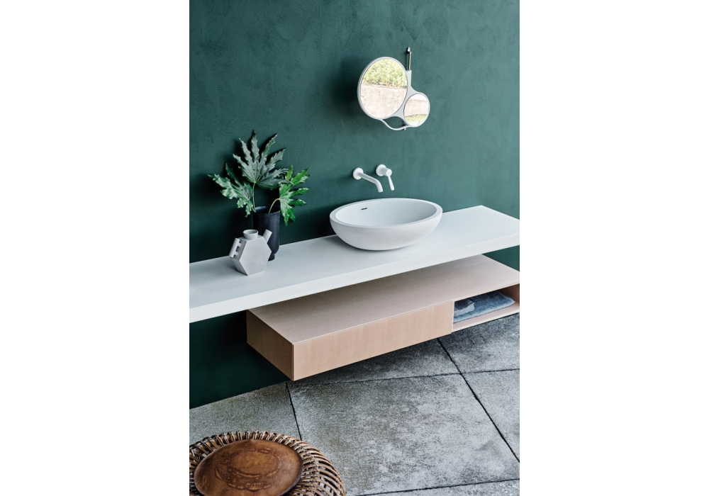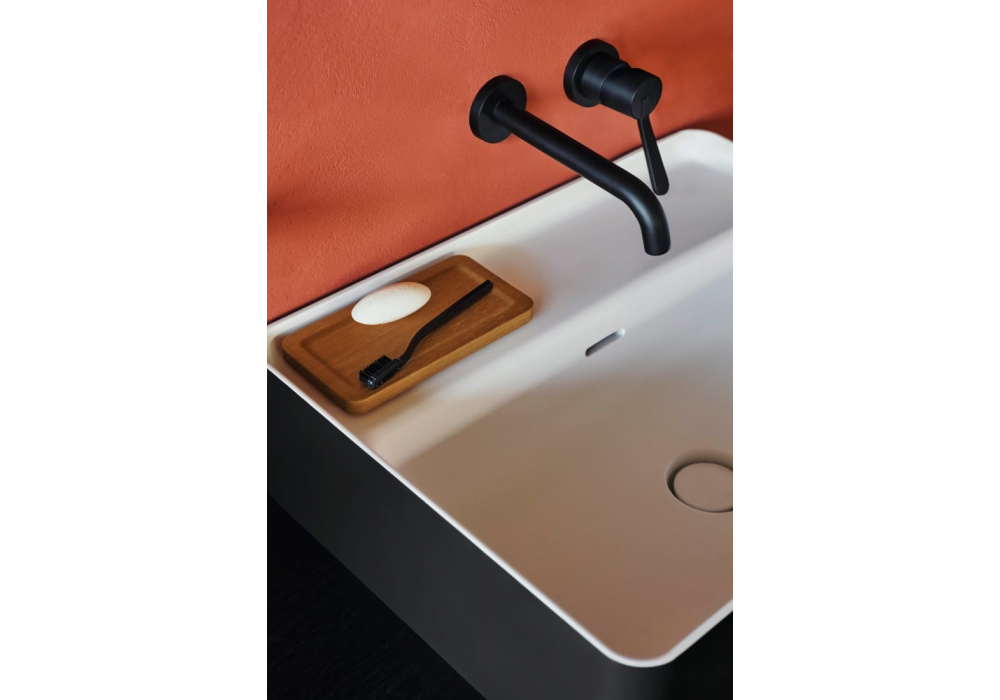 Fez 2 diseñado por Benedini Associati para Agape es un grifo para lavabo de pared fabricado en latón en diferentes acabados. Disponible con boca de 15 o 20 cm.