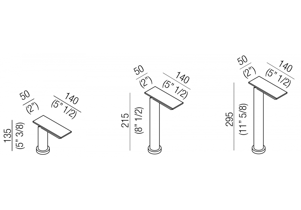 | Dimensiones | 14 x 5 x H 13.5 cm; 14 x 5 x H 21.5 cm; 14 x 5 x H 29.5 cm. |