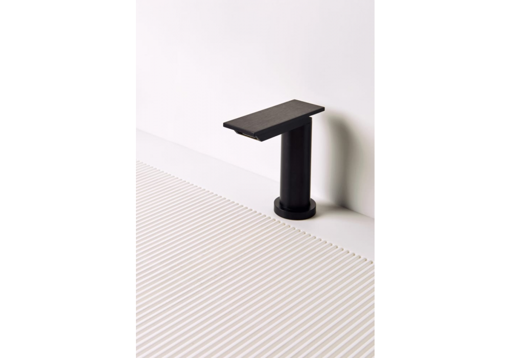 Sen firmado por Gwenael Nicolas, Curiosity para Agape es un grifo monomando fabricado en aluminio anodizado cepillado con acabado negro, con mandos independientes, para lavabo o bidé. Disponible en diferentes modelos.