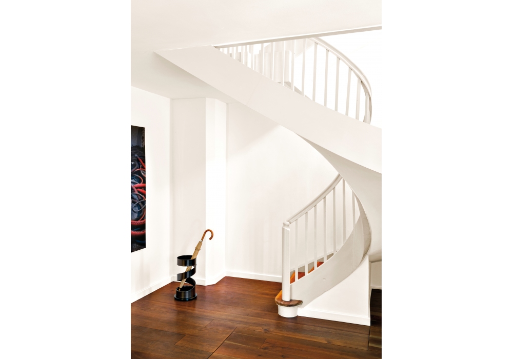 Usha diseñado por Eckart Muthesius para ClassiCon es un paragüero de acero plano cromado. Base de madera en laca mate sedosa negra.