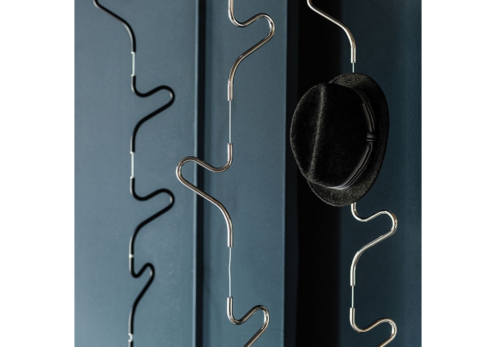 Air diseñado por Pio & Tito Toso, A. Quaggiotto para Cattelan Italia es un perchero de techo con cable en acero y detalles disponibles en diferentes acabados: cromado, titanio en relieve, barnizado blanco, negro o amarillo opaco. Es posible integrar un cable en acero adicional de 3 metros.