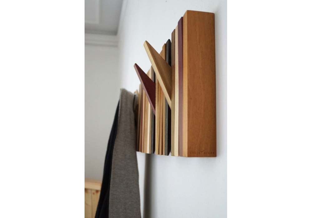 Pantonia Premium por Yurii Cegla para Ornythos, es una percha para ropa. Está hecho con diferentes especies de madera: yroko, arce, wengué, castaño, amazzea, viola, doussi, etimo y olmo.