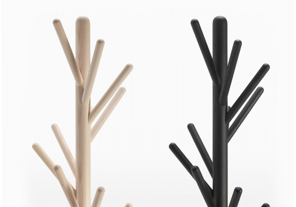 Spiros diseñado por Vico Magistretti para Acerbis es un perchero en madera de fresno teñida. Disponible en diferentes acabados.