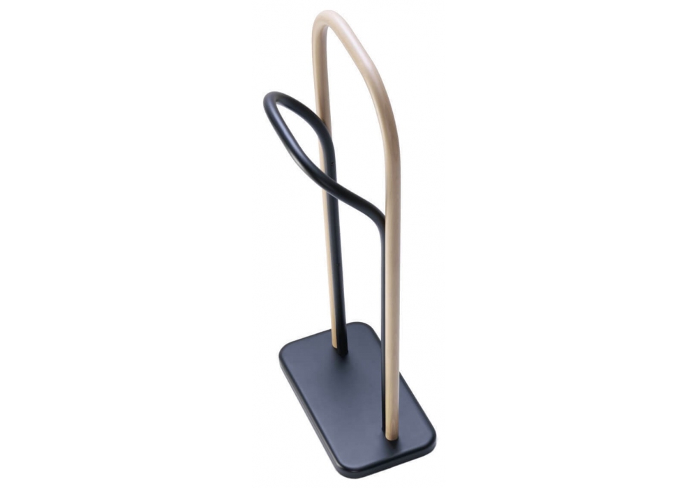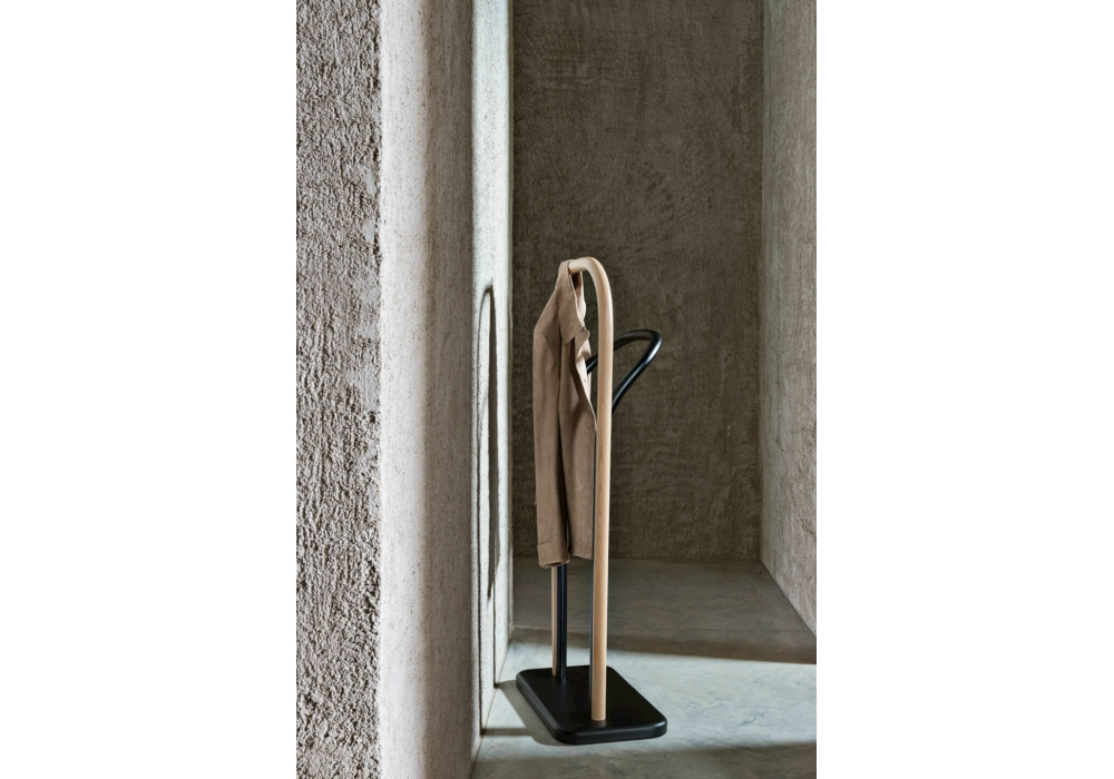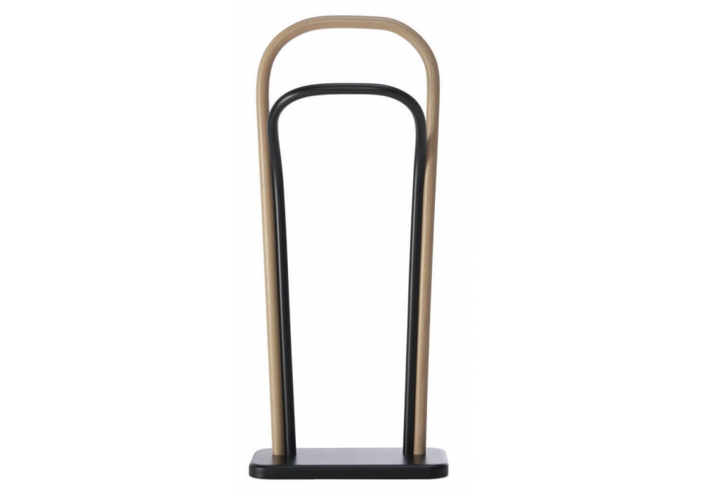 Arch Clothes Valet diseñado por Front para Gebrüder Thonet Vienna es un perchero de madera de haya curvada bicolor: negro y haya natural.