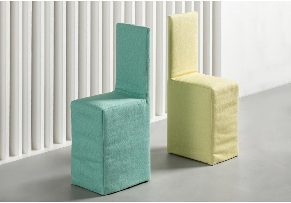 Servomuto Vestito diseñado por Flou es un accesorio que se puede utilizar como pequeña silla/perchero o colocar al lado de la cama como mesita de noche. Está fabricado íntegramente en acero con revestimiento de tejido.