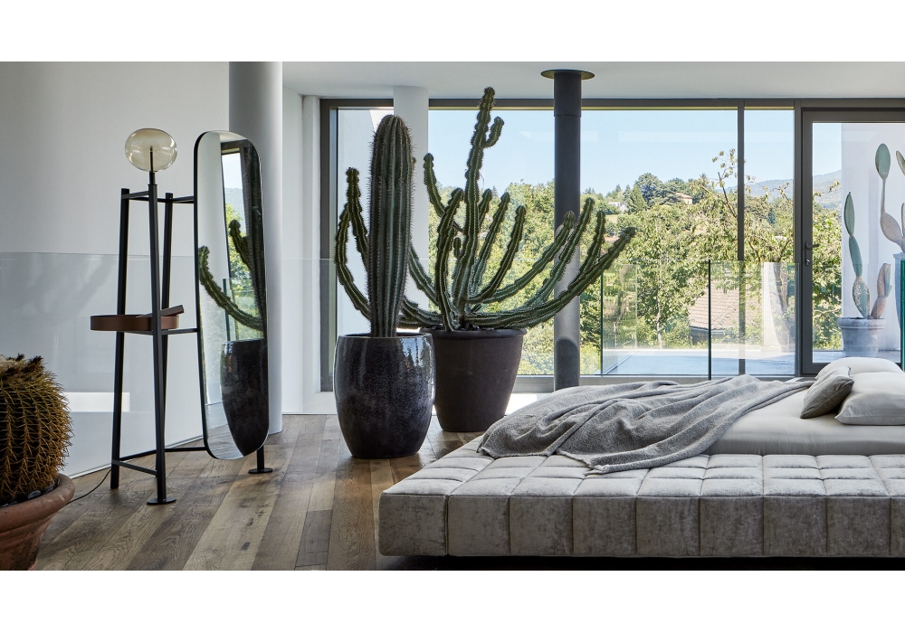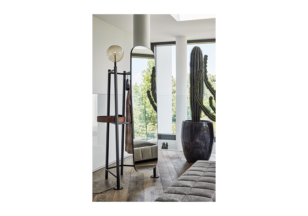 Salomé diseñado por Mauro Lipparini para Bonaldo es un perchero con estructura de metal, en diferentes acabados. La bandeja puede ser en el mismo acabado que la estructura o en el color que elijas entre latón y cobre. Está equipado con una pantalla de cristal, en 3 colores.