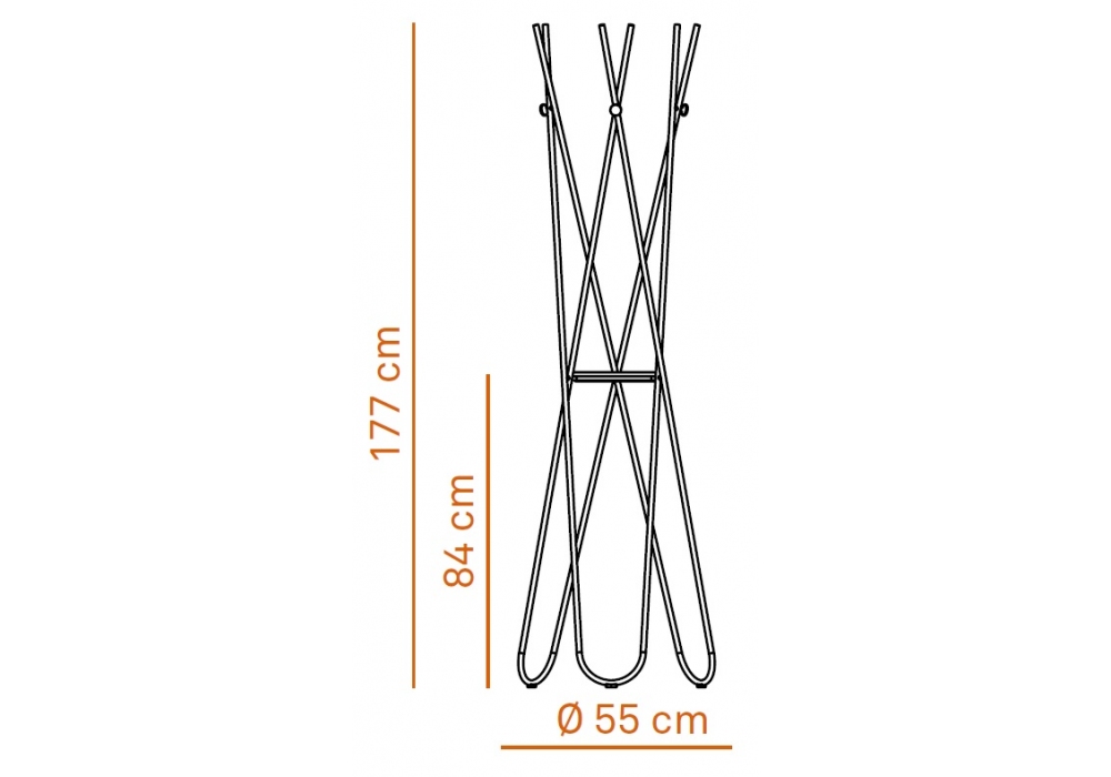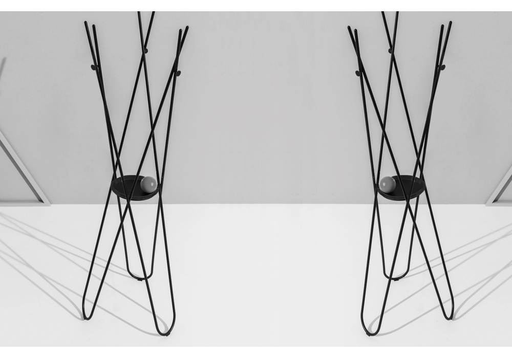 Wdrobe diseñado por RSW para Discipline es un perchero con estructura y accesorios en metal curvado gofrado negro.