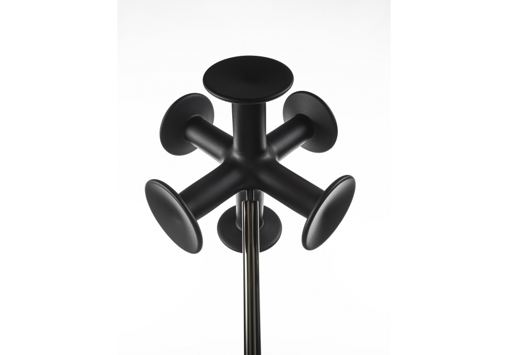 Nodo diseñado por T. Colzani para Porada es un perchero de fresno macizo. La base y el pie son de metal con acabado Kajal.