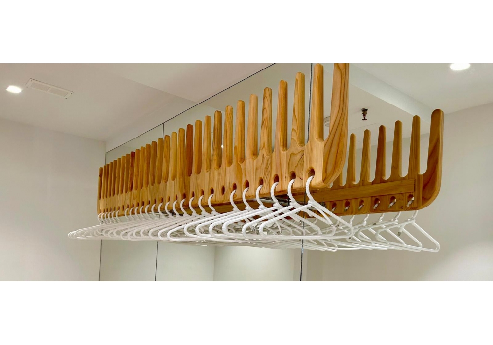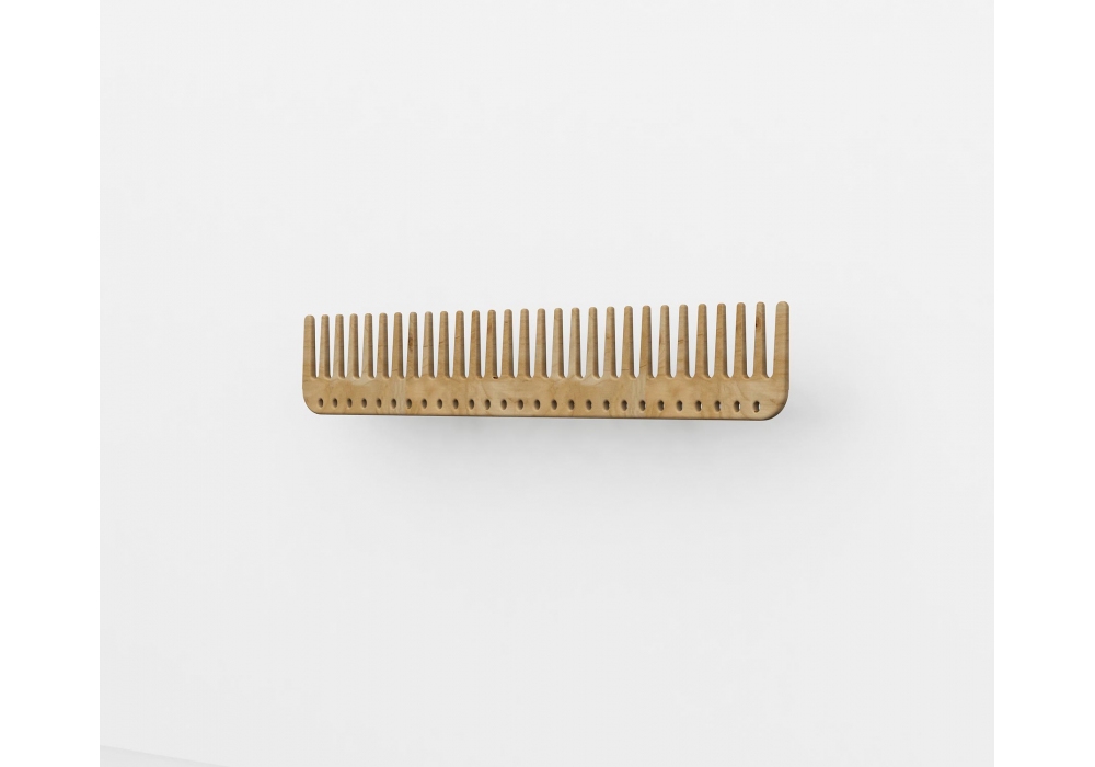 La Pettineuse diseñada por A.C Design para Riva 1920 es una percha de madera maciza de cedro perfumado inspirada en la forma de un peine.
