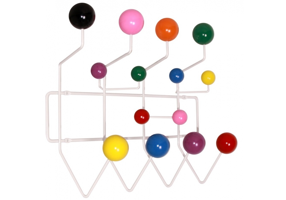 Vitra Hang il all: En el perchero «Hang it all», los ganchos han sido sustituidos por unas bolas de madera de vivos colores que animarán a los niños a colgar en ellas todas sus cosas. Como la distancia entre las bolas es siempre la misma, se pueden montar varios percheros uno a continuación de otro para disponer de almacenamiento adicional.