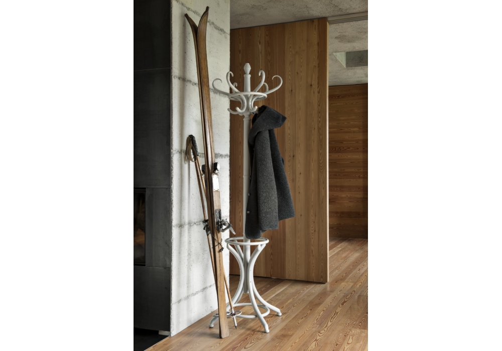 Kleiderständer diseñado por Gebrüder Thonet Vienna es un perchero de haya curvada disponible en diferentes acabados.