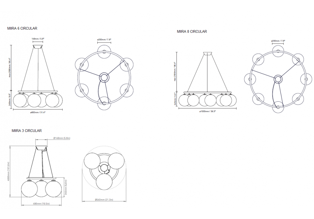 | Dimensiones | Ø 80 x H max 400 cm; Ø 100 x H max 400 cm; Ø 54 x H max 400 cm. |