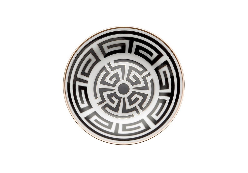 Piatto Caffè Labirinto Nero diseñado por Ginori 1735 es un platillo decorado para taza de café.